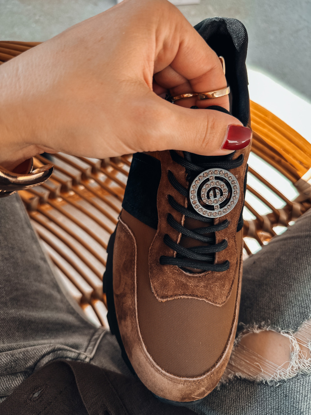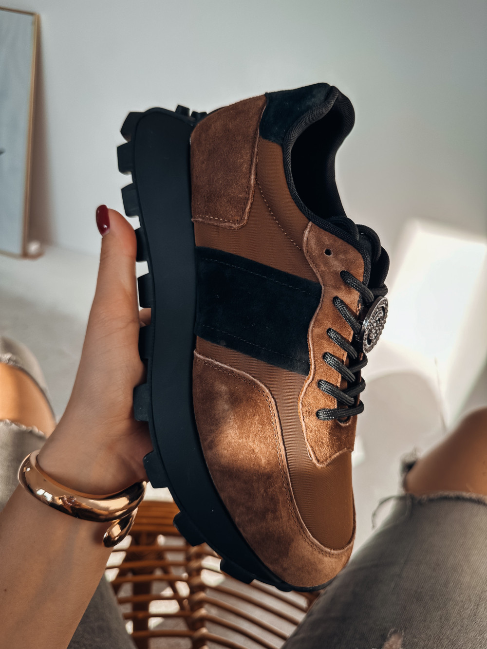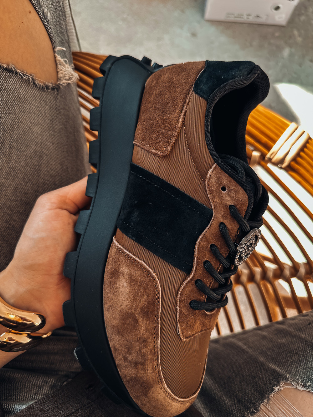 Czekoladowe sneakersy ze skóry zamszowej Goodin