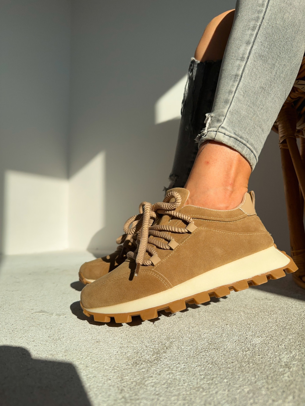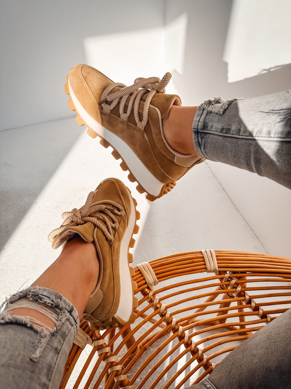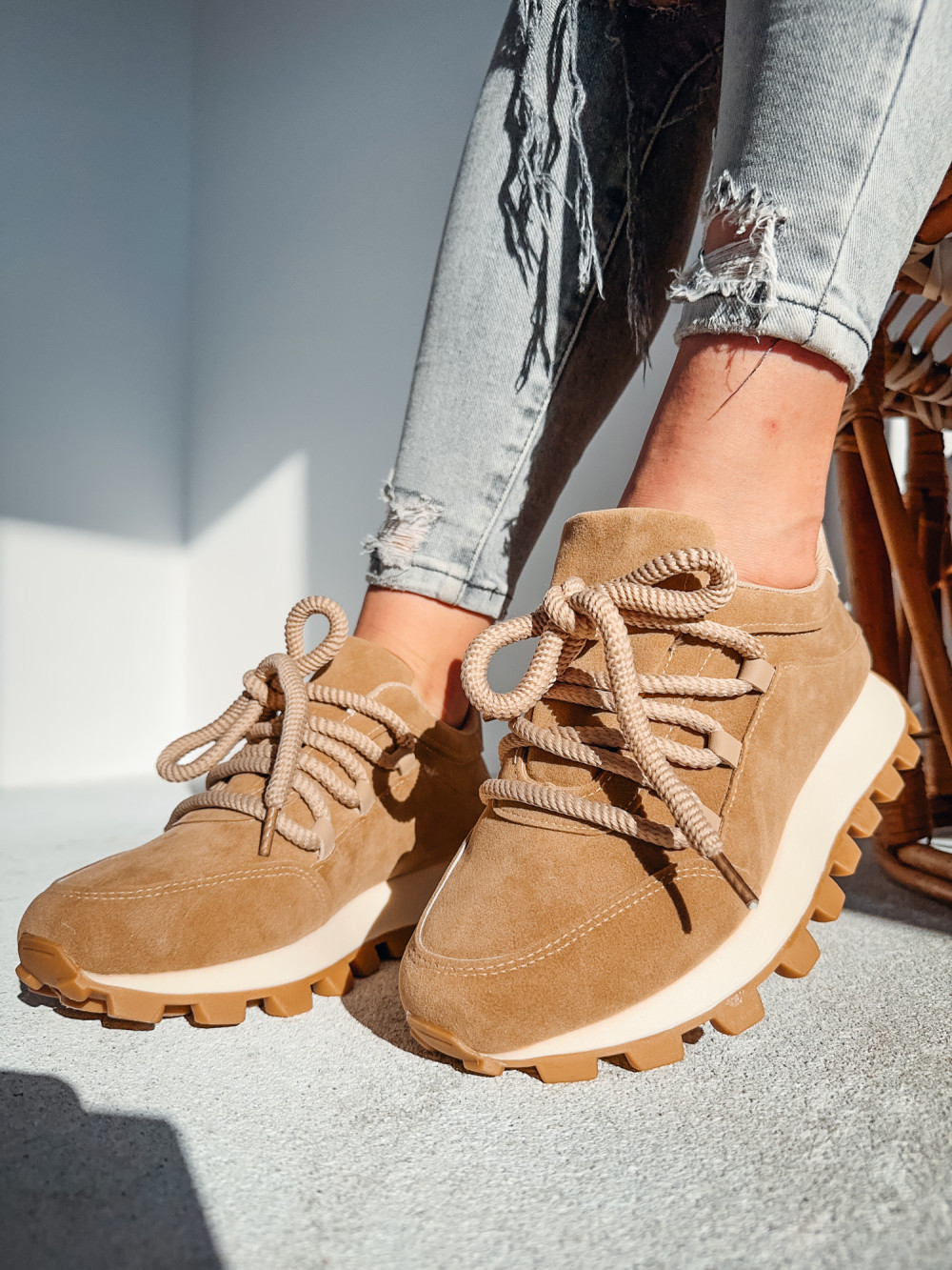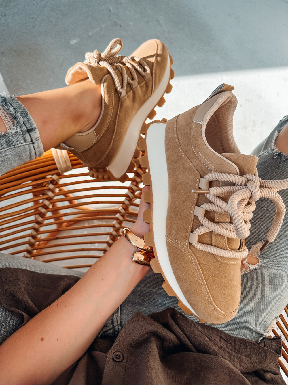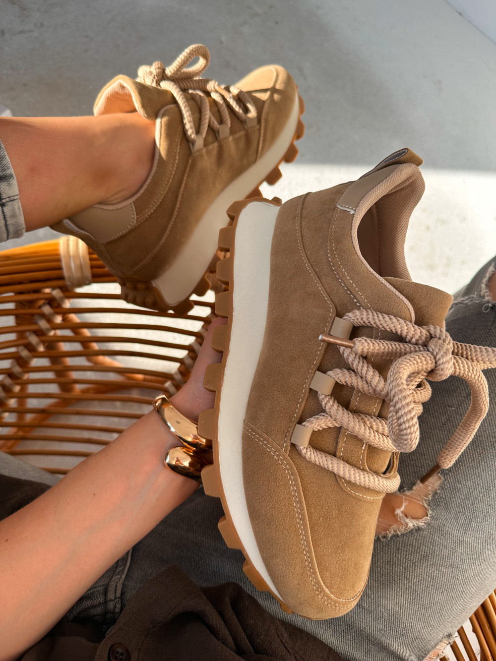 Sneakersy z grubymi sznurowadłami MARGOT beż