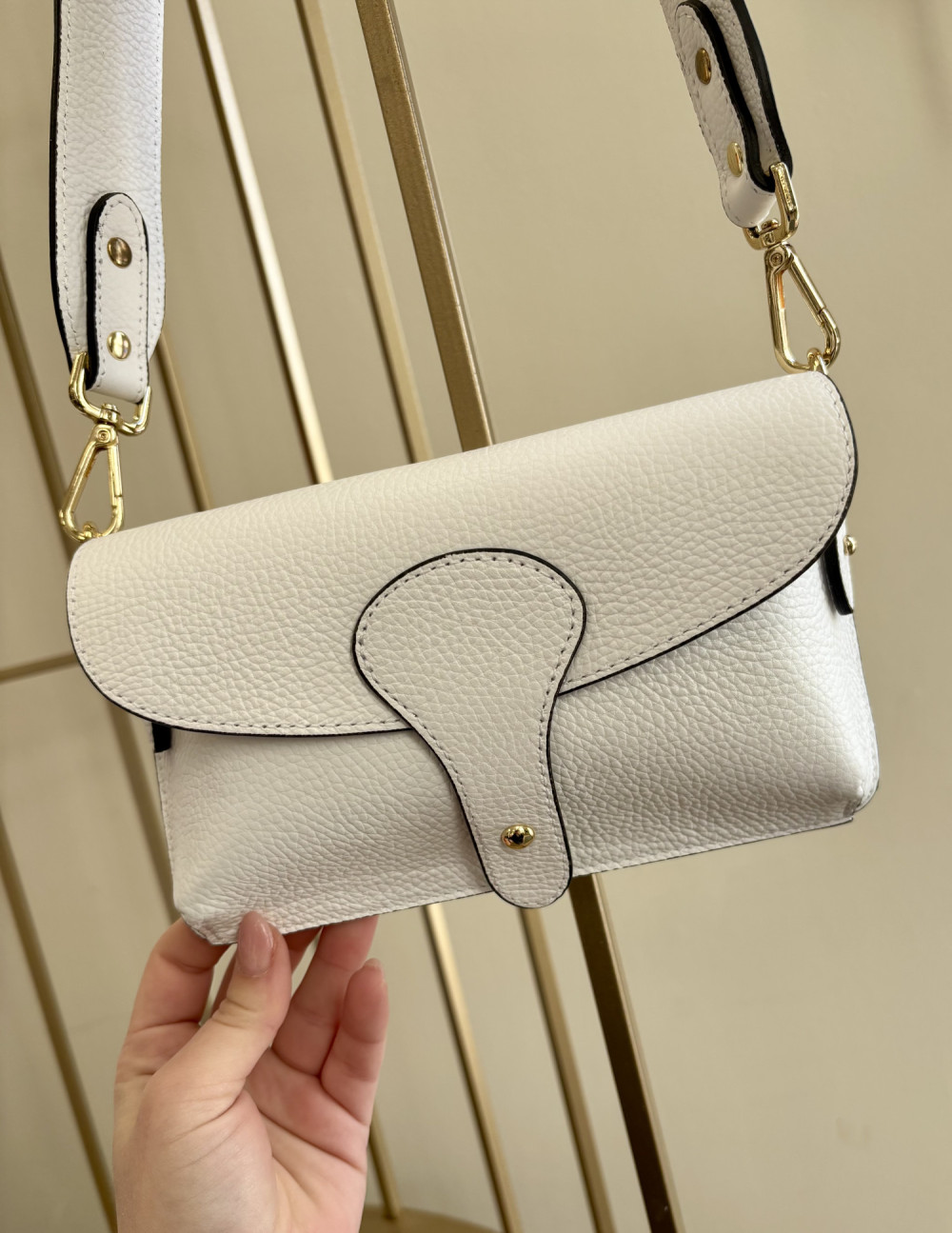 Biała torebka - nerka ze skóry naturalnej